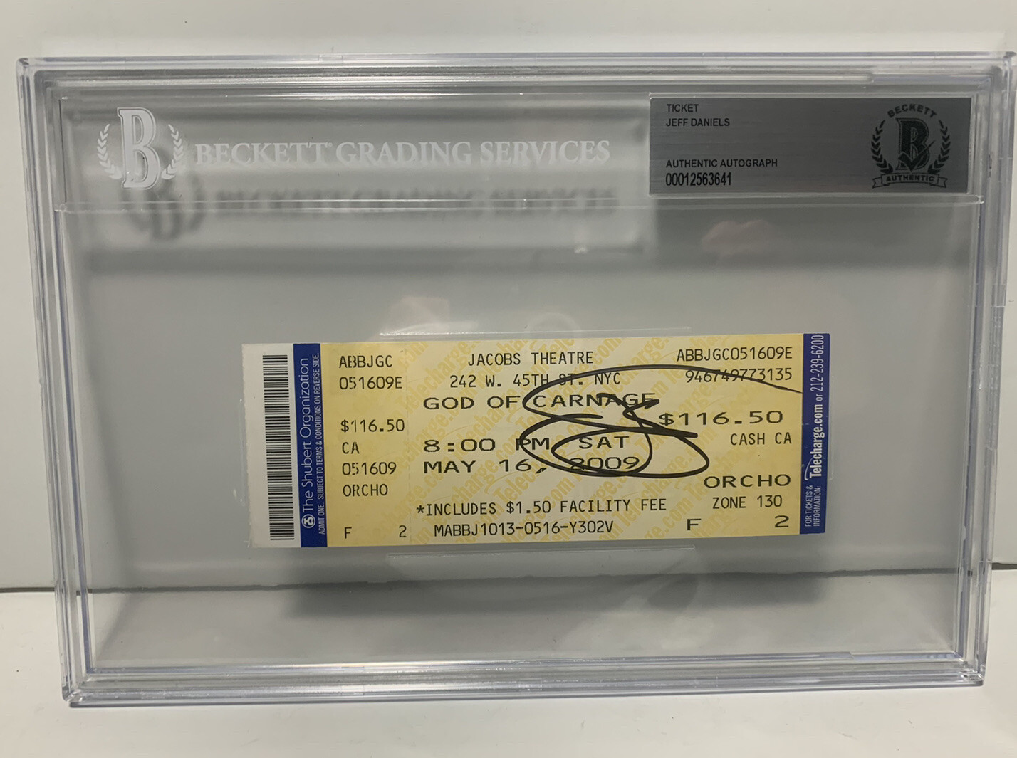 JEFF DANIELS SIGNED AUTOGRAPHED PLAY TICKET BECKETT CERTIFIED SLABBED COLLECTIBLE MEMORABILIA
