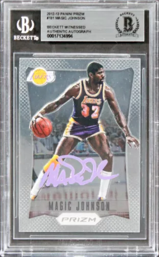 LAKERS MAGIC JOHNSON AUTHENTIC SIGNED 2012 PANINI PRIZM #181 CARD BAS SLABBED COLLECTIBLE MEMORABILIA
