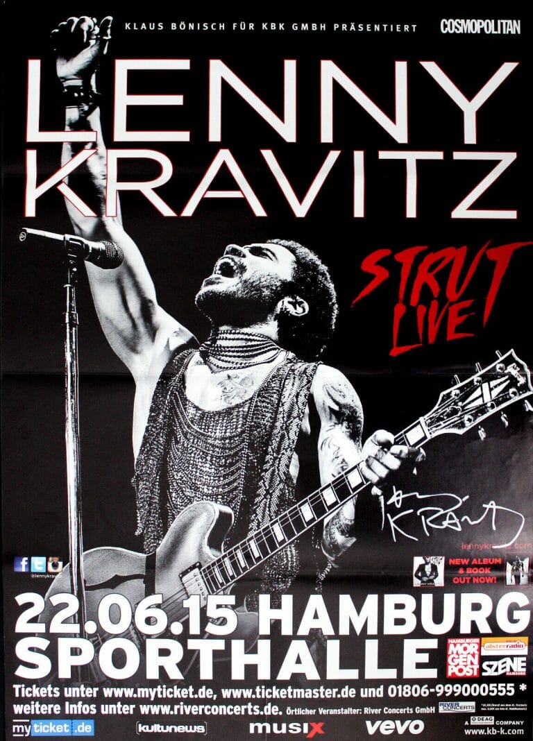LENNY KRAVITZ 24×36″ 2015 CONCERT POSTER FROM HAMBURG, GERMANY ACOA COLLECTIBLE MEMORABILIA