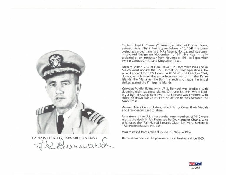 LLOYD BARNARD SIGNED 8X10 (D) PSA DNA AC42062 WWII ACE 8 KILLS COLLECTIBLE MEMORABILIA