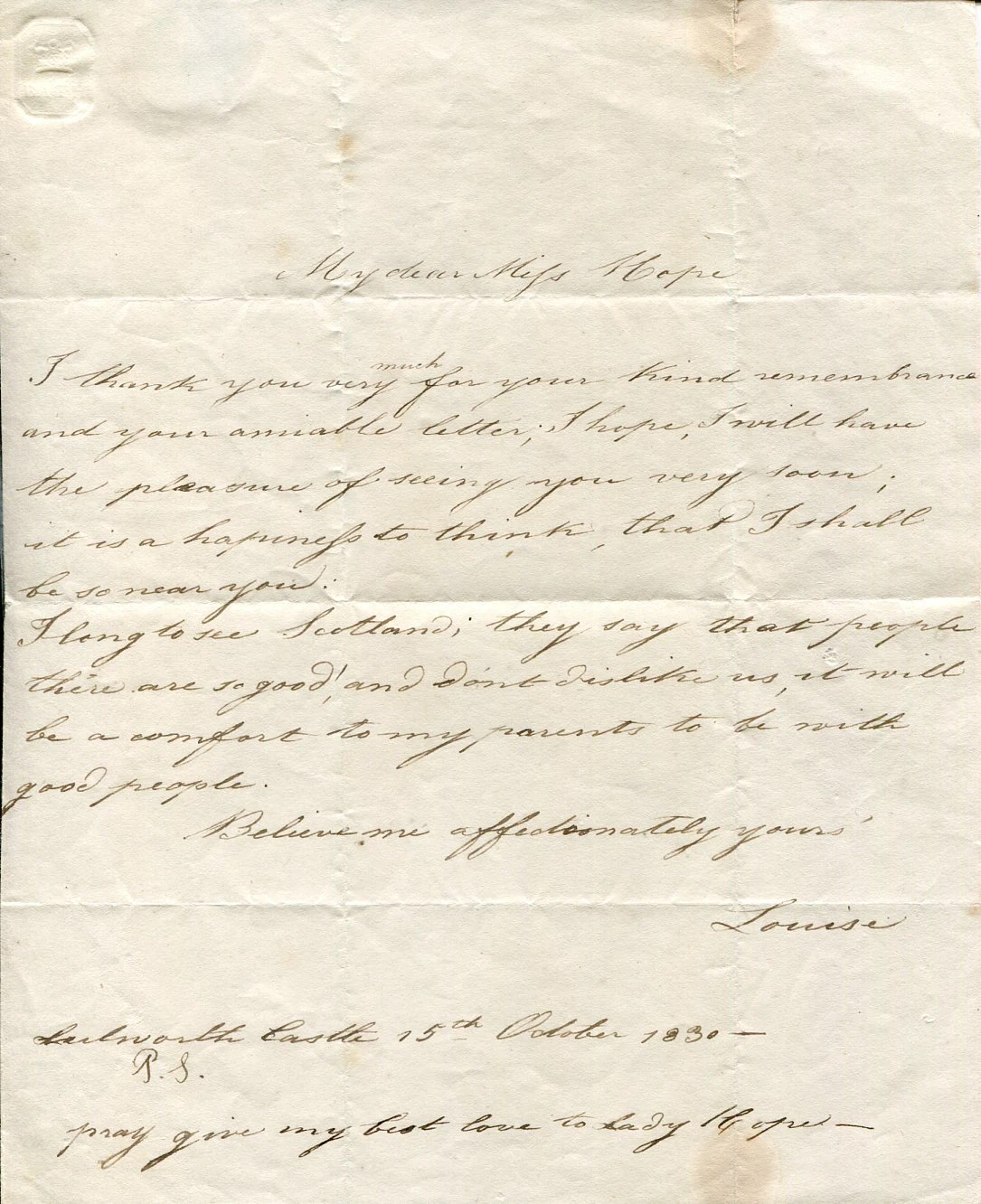 LOUISE OF ORLEANS 1ST QUEEN CONSORT OF THE BELGIANS RARE SIGNED AUTOGRAPH LETTER COLLECTIBLE MEMORABILIA