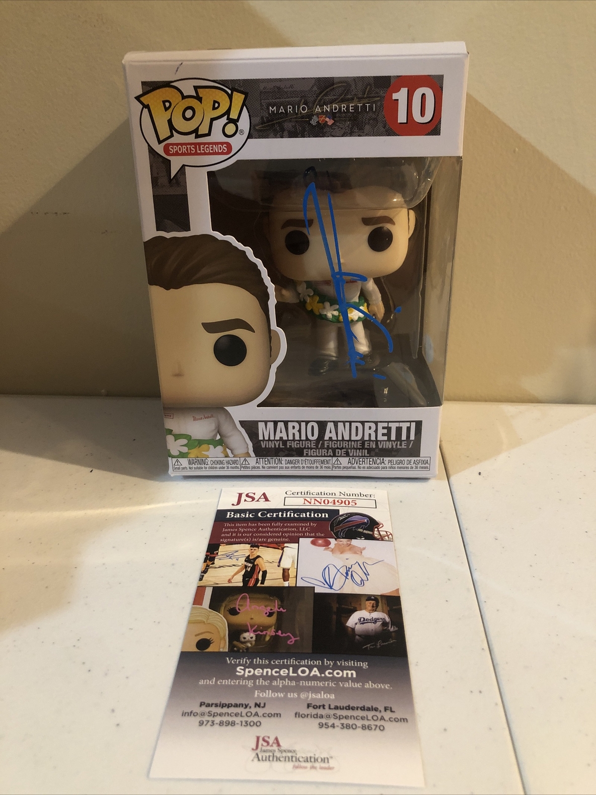 MARIO ANDRETTI SIGNED AUTOGRAPH SPORTS LEGENDS FUNKO POP JSA COA RACING LEGEND COLLECTIBLE MEMORABILIA