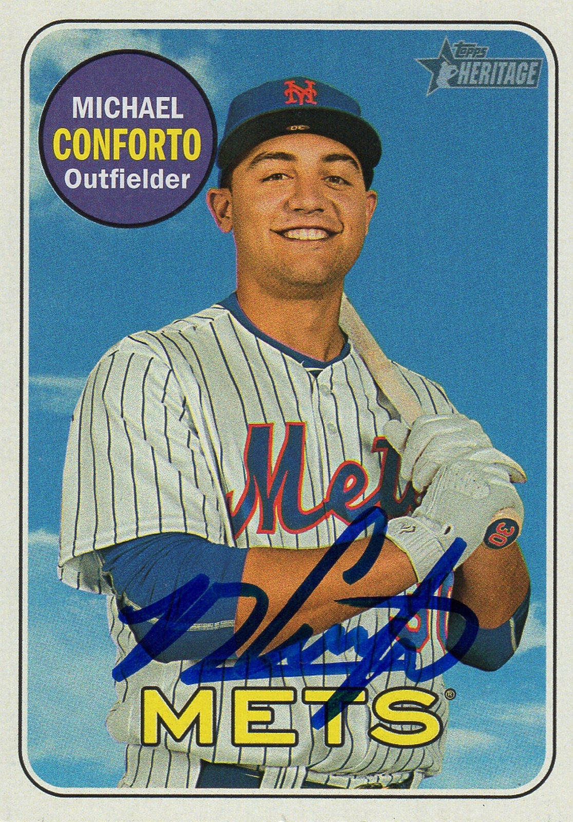 NEW YORK METS MICHAEL CONFORTO SIGNED TRADING CARD 2018 TOPPS HERITAGE #364 COA COLLECTIBLE MEMORABILIA