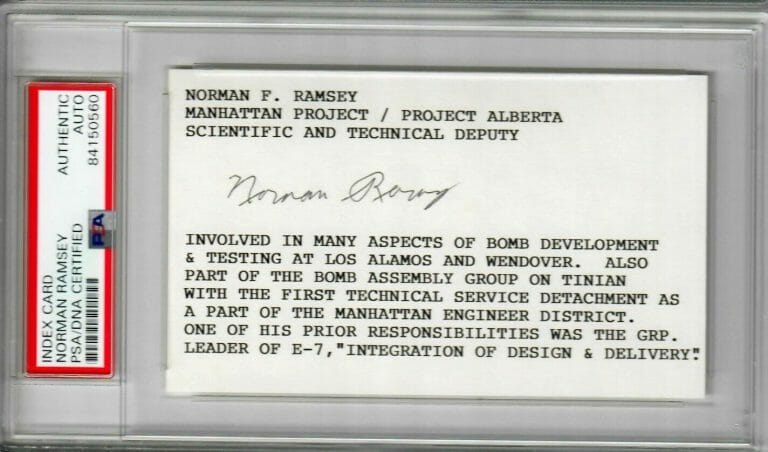 NORMAN RAMSEY INDEX CARD PSA DNA 84150560 (D) MANHATTAN PROJECT PROJECT ALBERTA COLLECTIBLE MEMORABILIA