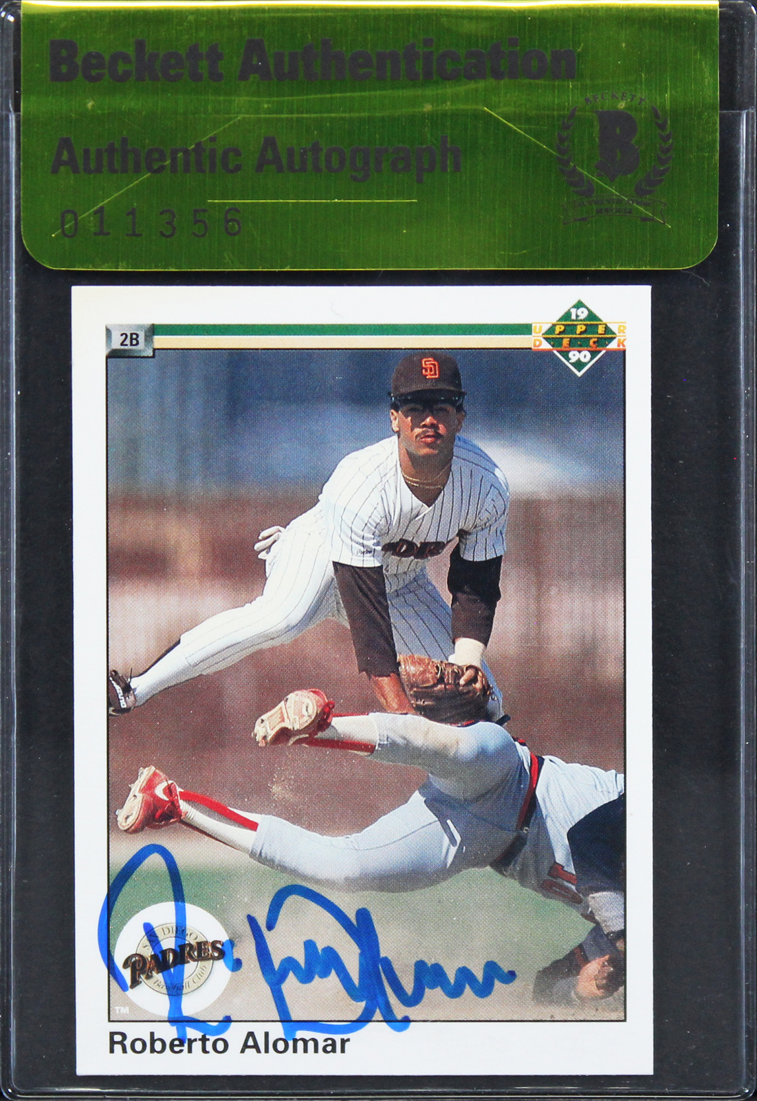 PADRES ROBERTO ALOMAR AUTHENTIC SIGNED 1990 UPPER DECK #346 CARD BAS #11356 COLLECTIBLE MEMORABILIA