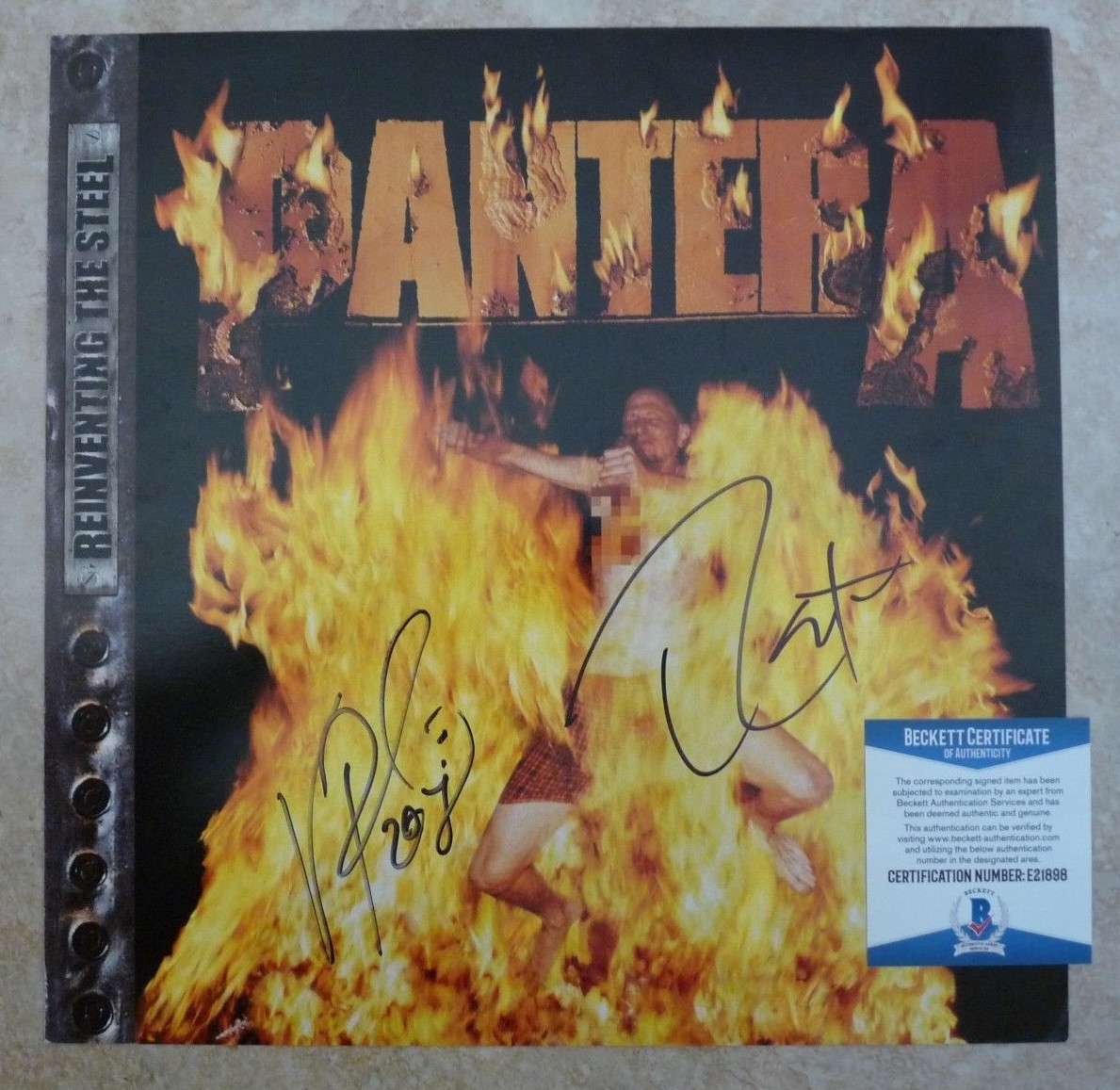 PANTERA VINNIE & REX SIGNED AUTOGRAPHED BECKETT CERTIFIED 12″ LP FLAT POSTER #1 COLLECTIBLE MEMORABILIA