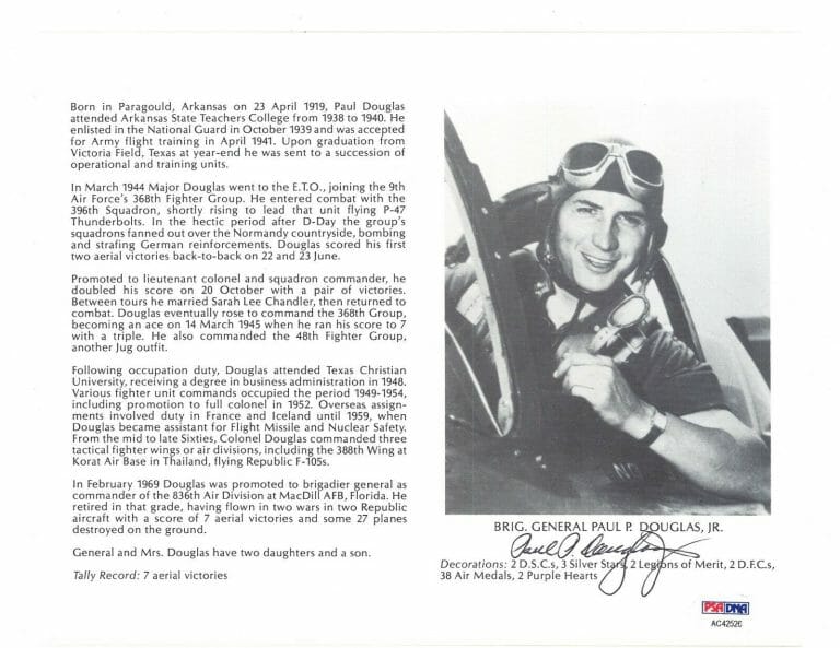 PAUL DOUGLAS SIGNED 8X10 (D) PSA DNA AC42526 WWII ACE 7 KILLS COLLECTIBLE MEMORABILIA