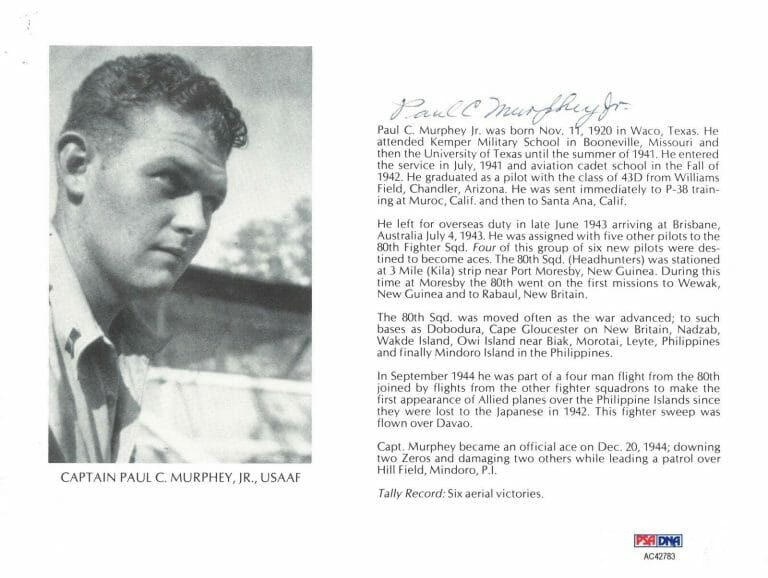 PAUL MURPHEY JR SIGNED 8X10 (D) PSA DNA AC42783 WWII ACE 6 KILLS COLLECTIBLE MEMORABILIA