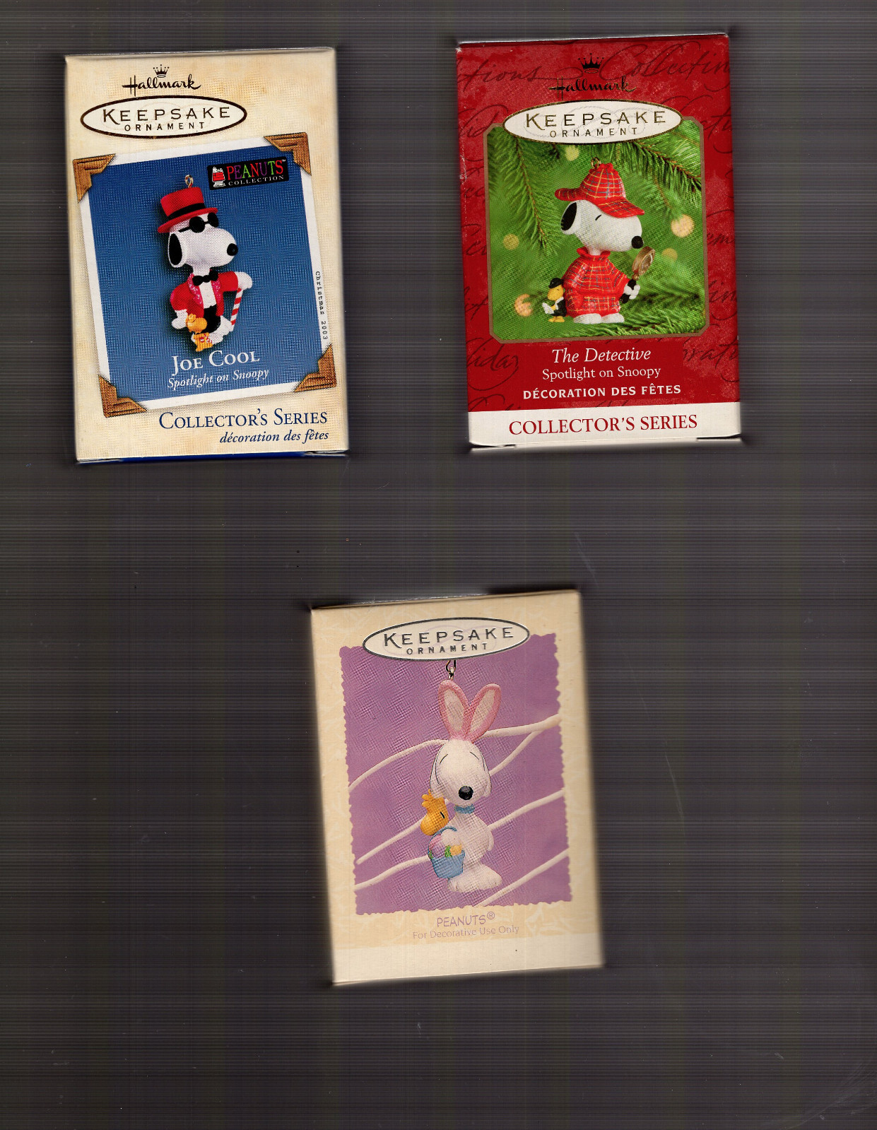PEANUTS JOE COOL+EASTER BUNNY HALLMARK ORNAMENTS LOT OF 2 BOTH NEW IN BOXES COLLECTIBLE MEMORABILIA