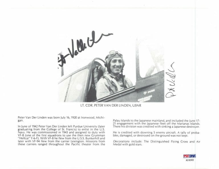 PETER VAN DER LINDEN SIGNED 8X10 (D) PSA DNA AC42432 WWII ACE 5 KILLS COLLECTIBLE MEMORABILIA