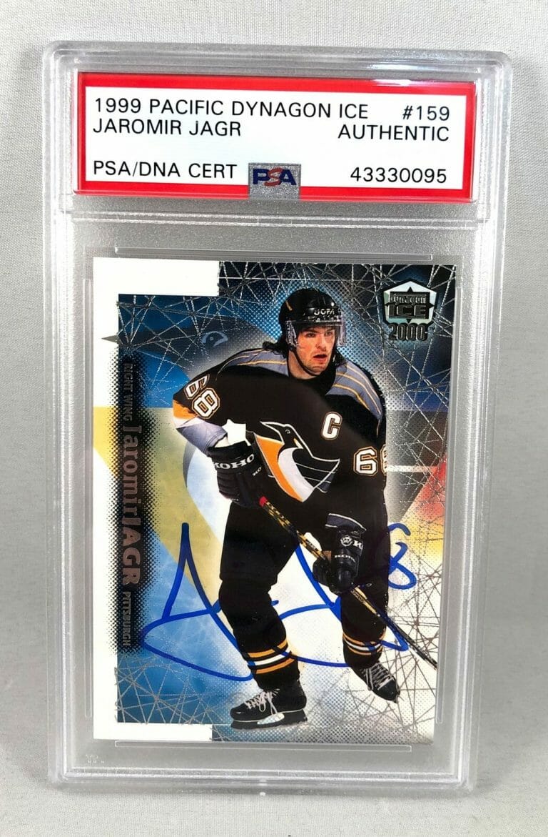 PITTSBURGH PENGUINS JAROMIR JAGR SIGNED TRADING CARD 1999 PACIFIC DYNAGON ICE #1 COLLECTIBLE MEMORABILIA