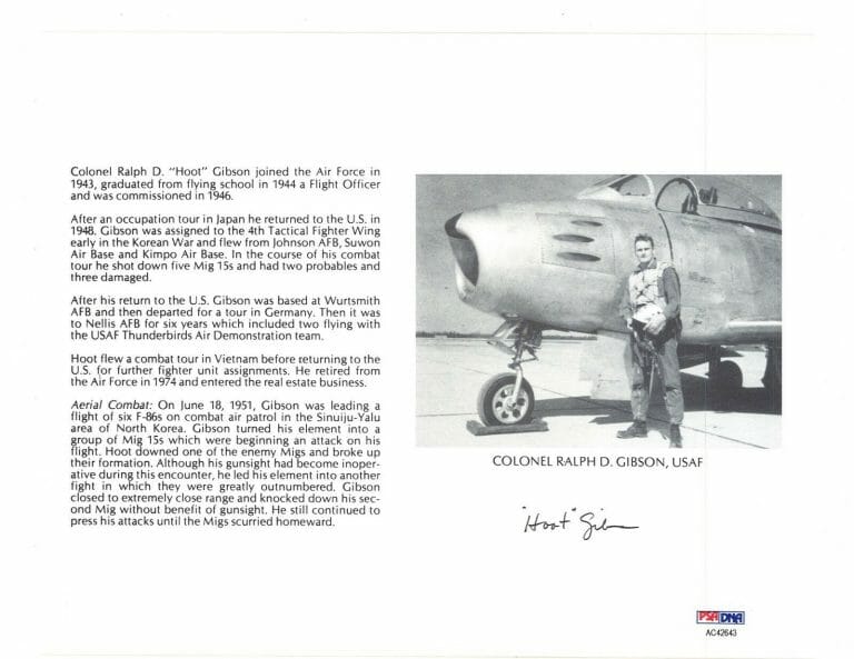 RALPH HOOT GIBSON SIGNED 8X10 (D) PSA DNA AC42643 KOREAN WAR ACE 5 KILLS COLLECTIBLE MEMORABILIA