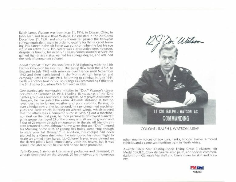 RALPH WATSON SIGNED 8X10 (D) PSA DNA AC42463 WWII ACE 5 KILLS COLLECTIBLE MEMORABILIA
