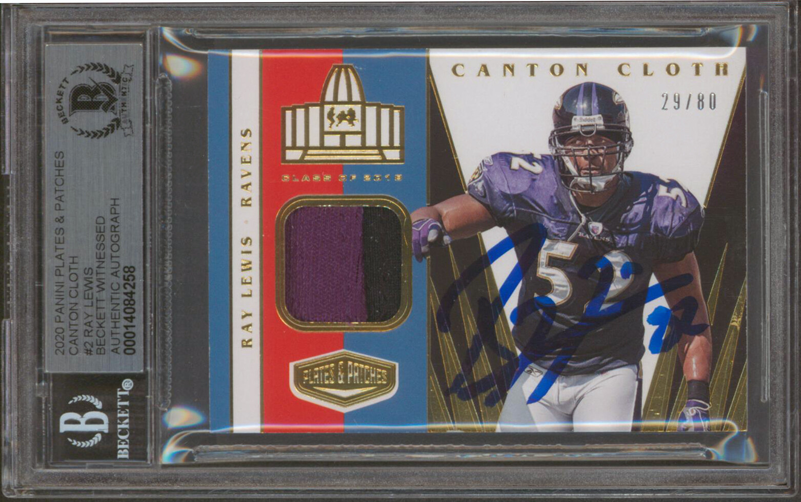 RAVENS RAY LEWIS SIGNED 2020 PANINI PP CC #2 CARD AUTO GEM 10! BAS SLABBED COLLECTIBLE MEMORABILIA