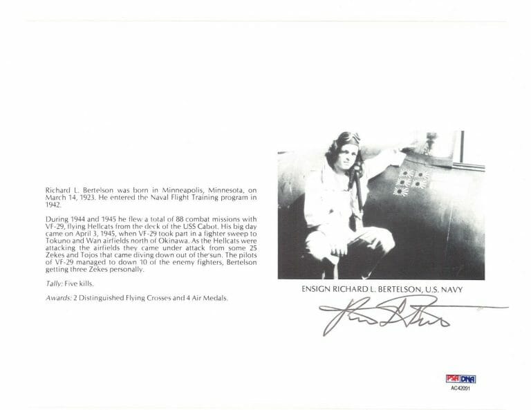 RICHARD BERTELSON SIGNED 8X10 (D) PSA DNA AC42091 WWII ACE 5 KILLS COLLECTIBLE MEMORABILIA