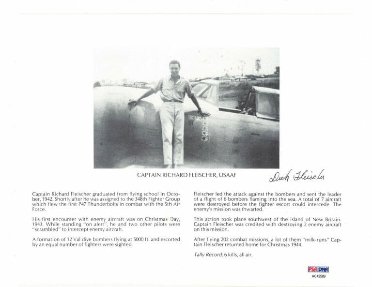 RICHARD FLEISCHER SIGNED 8X10 PSA DNA AC42589 WWII ACE 6 KILLS COLLECTIBLE MEMORABILIA