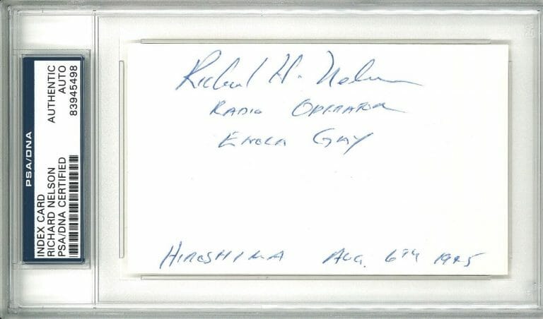 RICHARD NELSON SIGNED INDEX CARD PSA DNA 83945498 (D) ENOLA GAY LEWIS CREW B-9 COLLECTIBLE MEMORABILIA