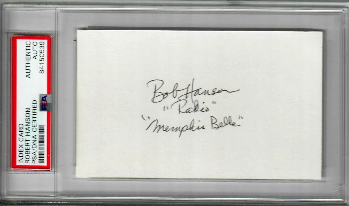 ROBERT HANSON SIGNED INDEX CARD PSA DNA 84150539 (D) WWII MEMPHIS BELLE RADIO COLLECTIBLE MEMORABILIA