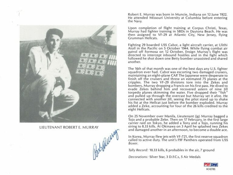 ROBERT MURRAY SIGNED 8X10 (D) PSA DNA AC42785 WWII ACE 10.33 KILLS COLLECTIBLE MEMORABILIA