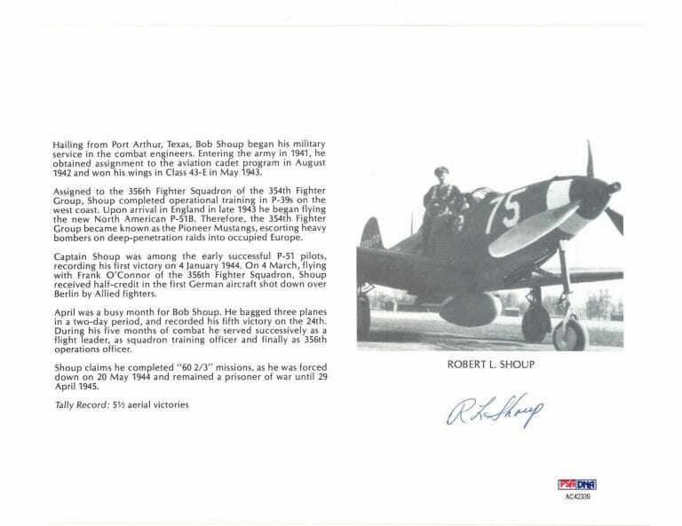 ROBERT SHOUP SIGNED 8X10 (D) PSA DNA AC42339 WWII ACE 5.5 KILLS COLLECTIBLE MEMORABILIA