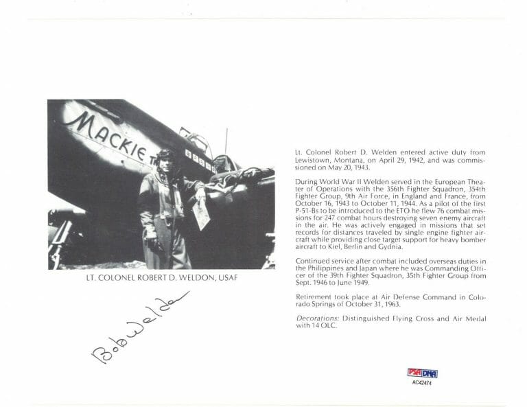 ROBERT WELDON SIGNED 8X10 (D) PSA DNA AC42474 WWII ACE 7 KILLS COLLECTIBLE MEMORABILIA