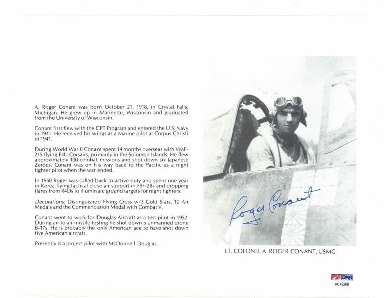 ROGER CONANT SIGNED 8X10 (D) PSA DNA AC42208 WWII ACE 6 KILLS COLLECTIBLE MEMORABILIA