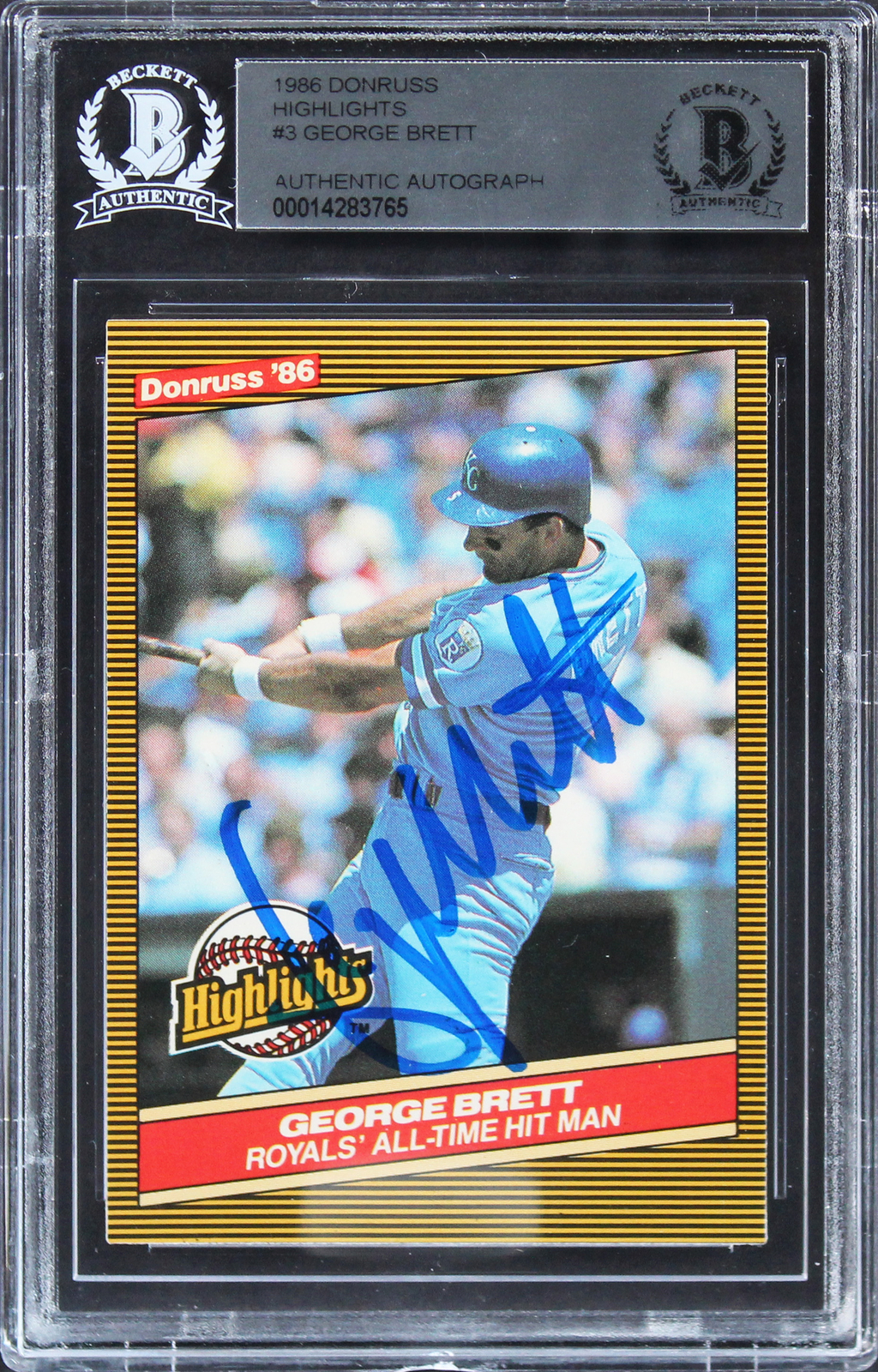 ROYALS GEORGE BRETT AUTHENTIC SIGNED 1986 DONRUSS HIGHLIGHTS #3 CARD BAS SLAB COLLECTIBLE MEMORABILIA