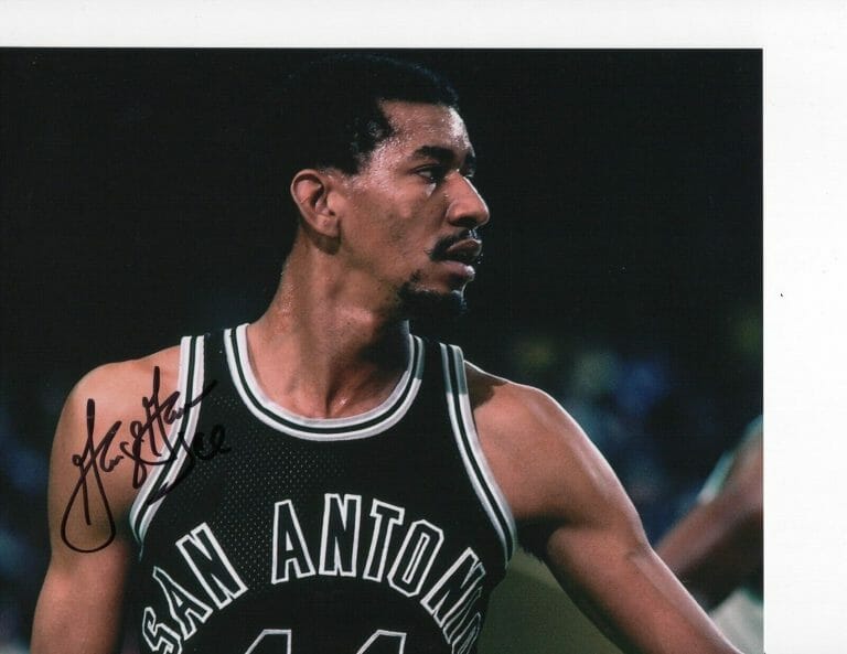 SAN ANTONIO SPURS GEORGE GERVIN BLACK JERSEY SIGNED 8X10 COLLECTIBLE MEMORABILIA