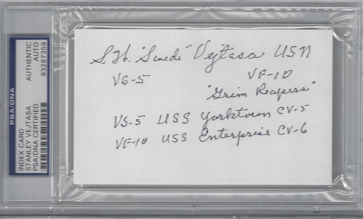 STANLEY SWEDE VEJTASA SIGNED INDEX CARD PSA DNA 83287359 (D) WWII ACE COLLECTIBLE MEMORABILIA