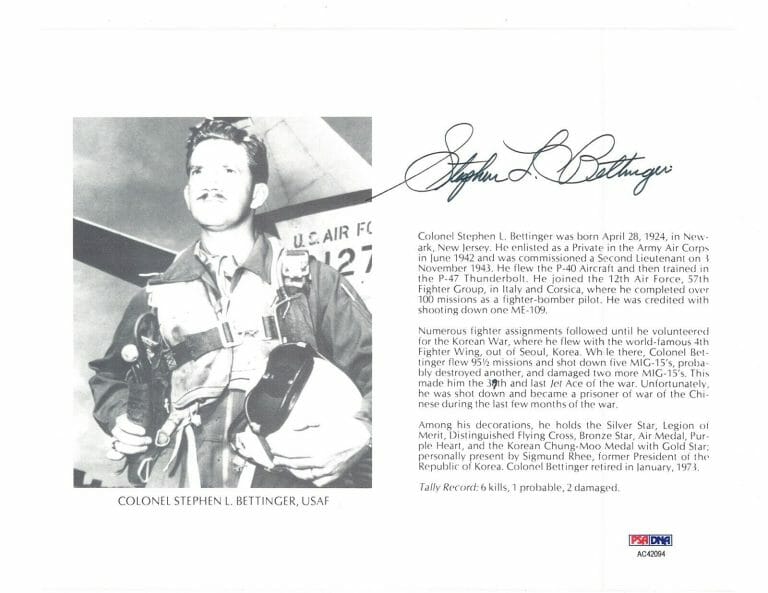 STEPHEN BETTINGER SIGNED 8X10 (D) PSA DNA AC42094 KOREAN WAR ACE 6 KILLS COLLECTIBLE MEMORABILIA