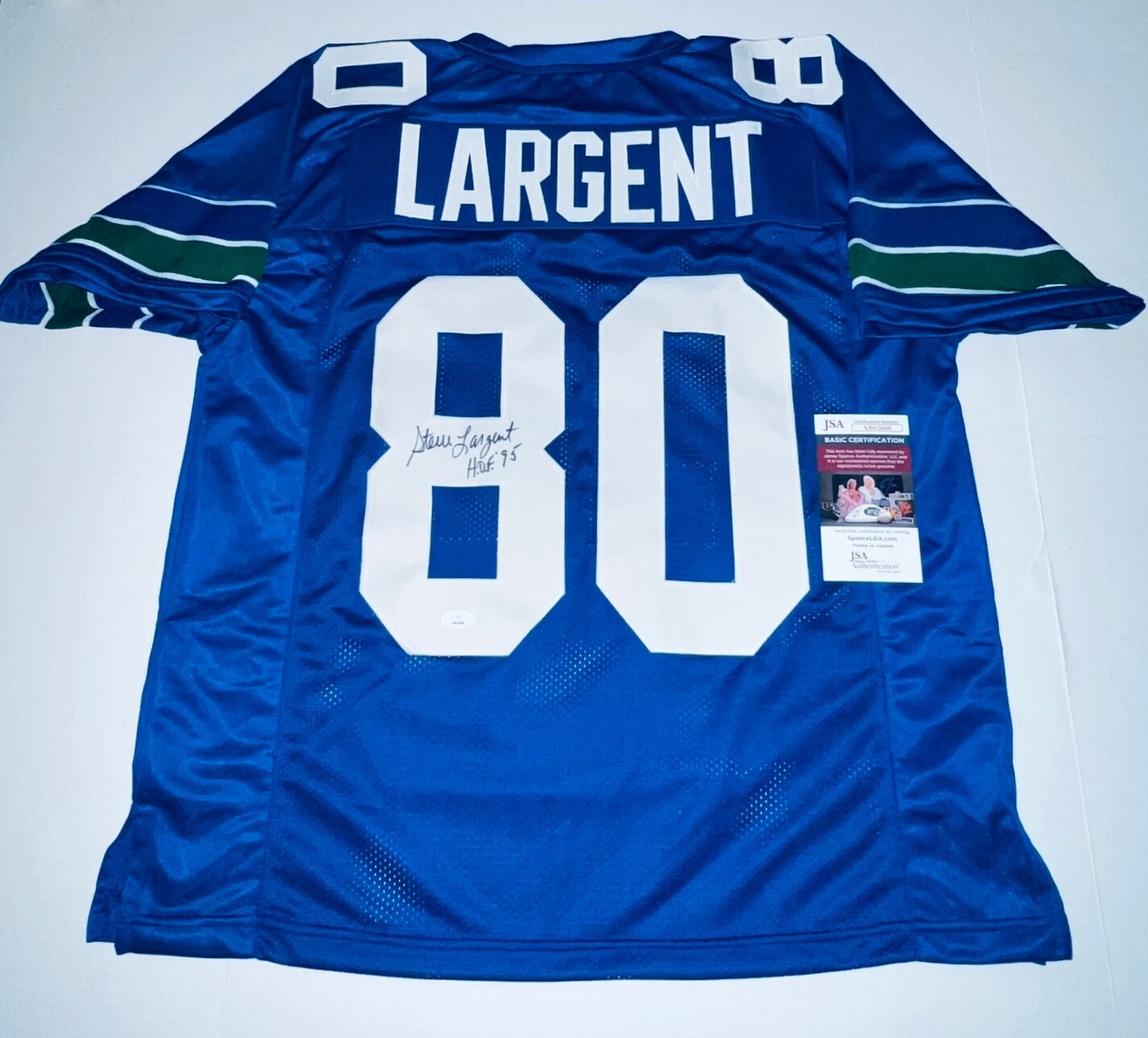 STEVE LARGENT SEATTLE SEAHAWKS SIGNED CUSTOM JERSEY AUTOGRAPHED W/ HOF INS JSA COLLECTIBLE MEMORABILIA