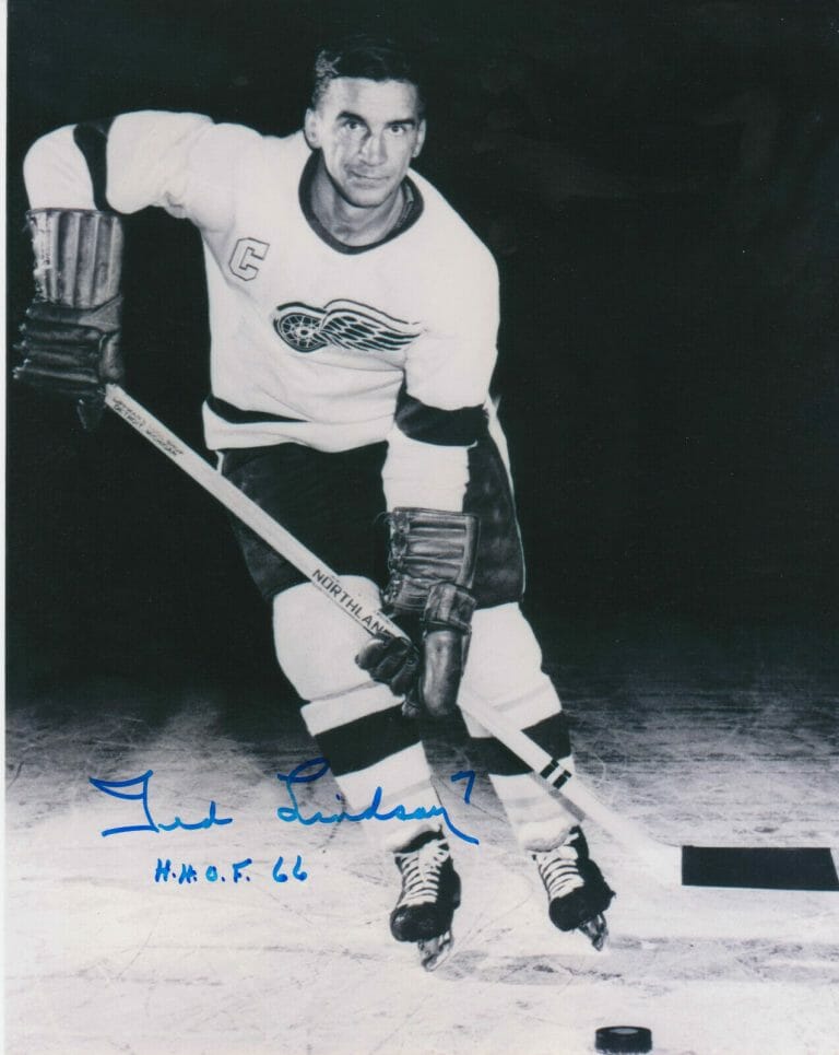 TED LINDSAY SIGNED DETROIT RED WINGS HOF 66 SIGNED AUTOGRAPHED 8×10 W/ COA COLLECTIBLE MEMORABILIA