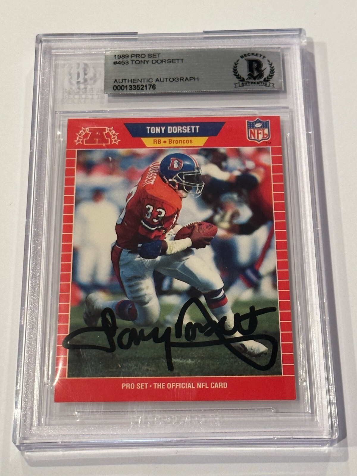 TONY DORSETT SIGNED 1989 PRO SET CARD #453 BECKETT AUTHENTICATED BAS COLLECTIBLE MEMORABILIA