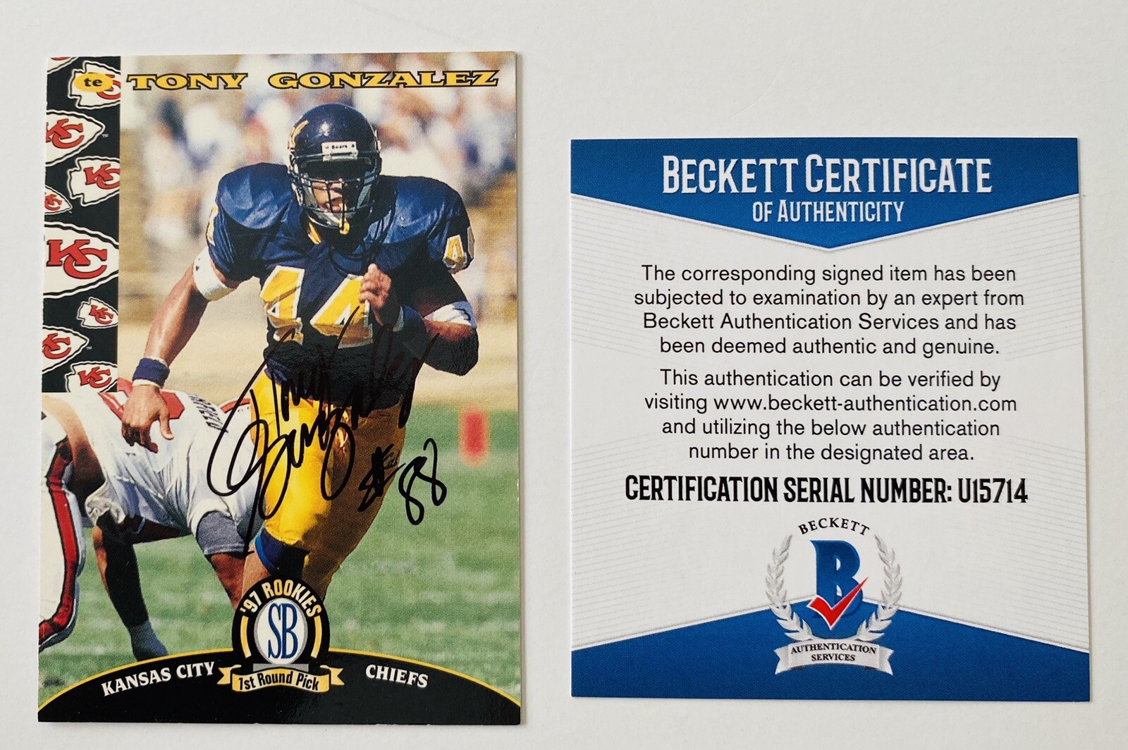 TONY GONZALEZ SIGNED AUTOGRAPHED 1997 SCORE BOARD ROOKIE CARD #2 BAS BECKETT COLLECTIBLE MEMORABILIA
