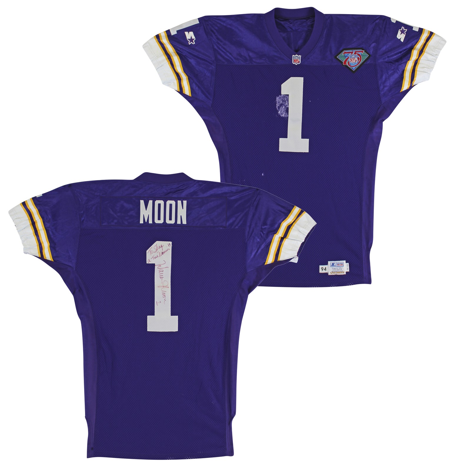 VIKINGS WARREN MOON SIGNED GAME WORN PURPLE STARTER PROLINE JERSEY BAS & SIA LOA COLLECTIBLE MEMORABILIA