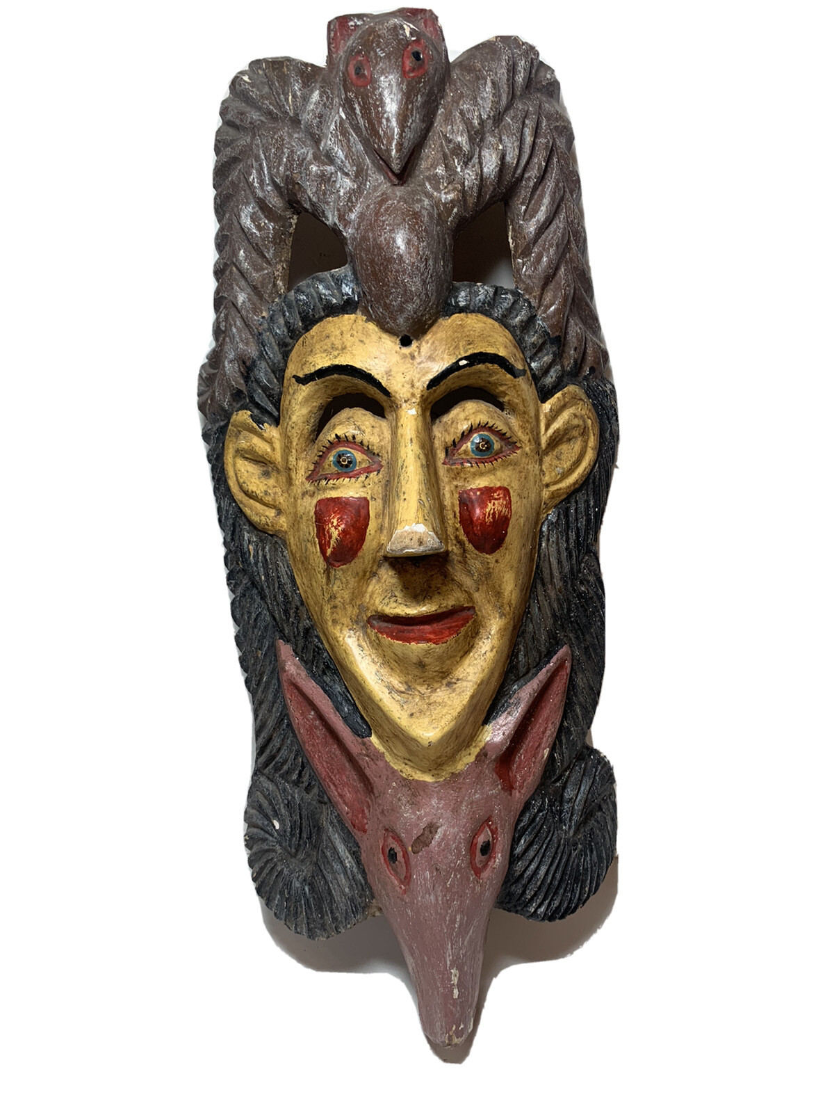 VINTAGE 1960S CEREMONIAL MEXICAN MASK CARVED AND PAINTED WOOD -GUERRERO COLLECTIBLE MEMORABILIA