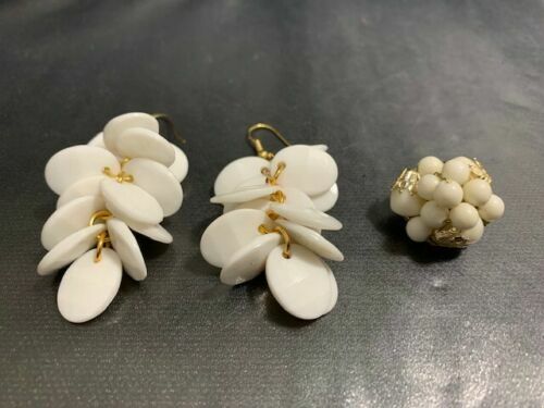 VINTAGE WHITE EAR RINGS+PENDANT MUST SEE VERY STYLISH GREAT PRICE COLLECTIBLE MEMORABILIA