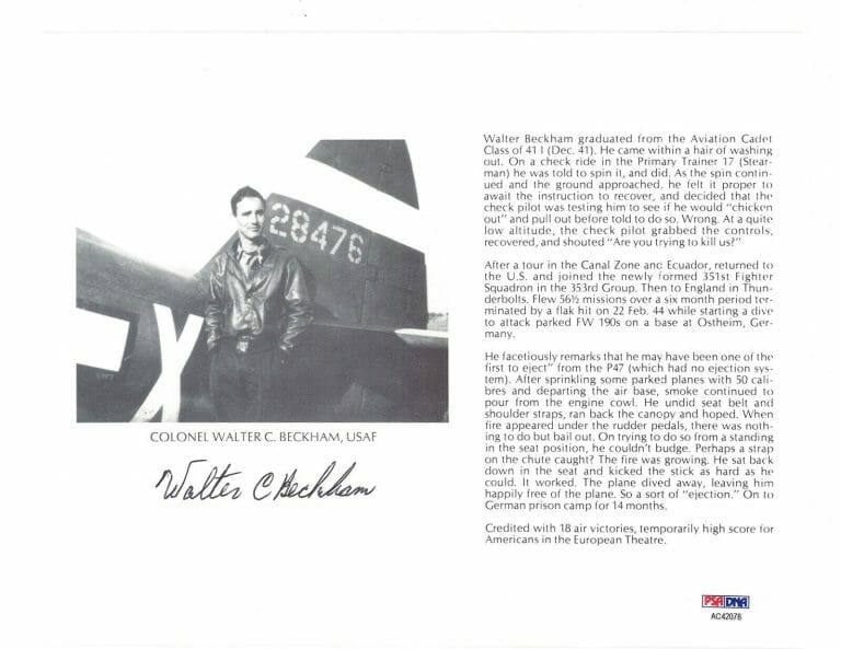 WALTER BECKHAM SIGNED 8X10 (D) PSA DNA AC42078 WWII ACE 18 KILLS COLLECTIBLE MEMORABILIA