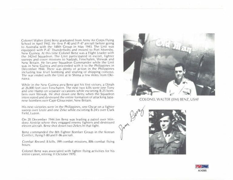 WALTER BENZ SIGNED 8X10 (D) PSA DNA AC42085 WWII ACE 8 KILLS COLLECTIBLE MEMORABILIA