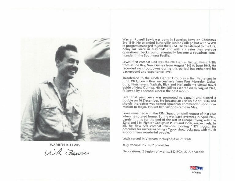 WARREN LEWIS SIGNED 8X10 (D) PSA DNA AC41608 WWII ACE 7 KILLS COLLECTIBLE MEMORABILIA