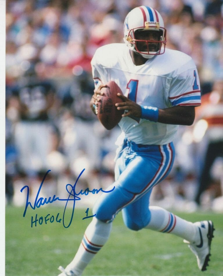 WARREN MOON SIGNED HOUSTON OILERS SIGNED AUTOGRAPHED HOF 06′ 8×10 W/ COA COLLECTIBLE MEMORABILIA