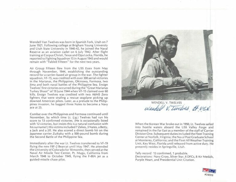 WENDELL TWELVES SIGNED 8X10 (D) PSA DNA AC42419 WWII ACE 13 KILLS COLLECTIBLE MEMORABILIA