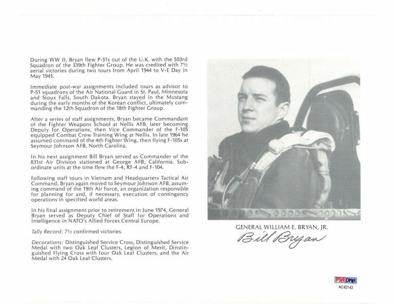 WILLIAM BRYAN SIGNED 8X10 (D) PSA DNA AC42143 WWII ACE 7.5 KILLS COLLECTIBLE MEMORABILIA