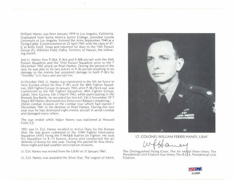 WILLIAM FERRIS HANEY SIGNED 8X10 (D) PSA DNA AC42685 WWII ACE 8 KILLS COLLECTIBLE MEMORABILIA