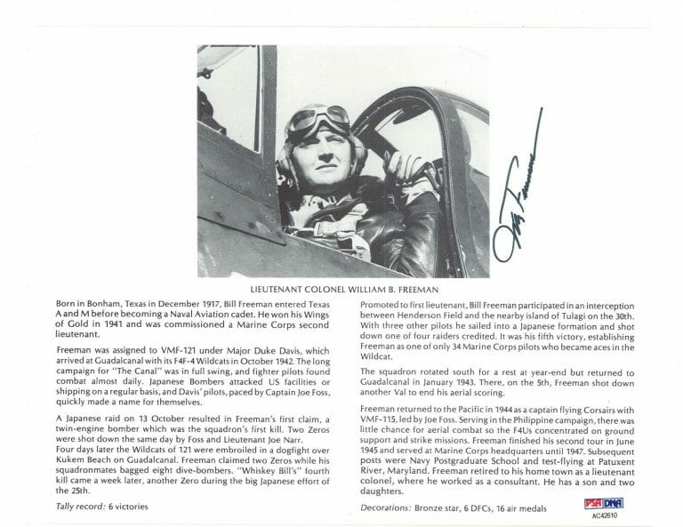 WILLIAM FREEMAN SIGNED 8X10 (D) PSA DNA AC42610 WWII ACE 5 KILLS COLLECTIBLE MEMORABILIA