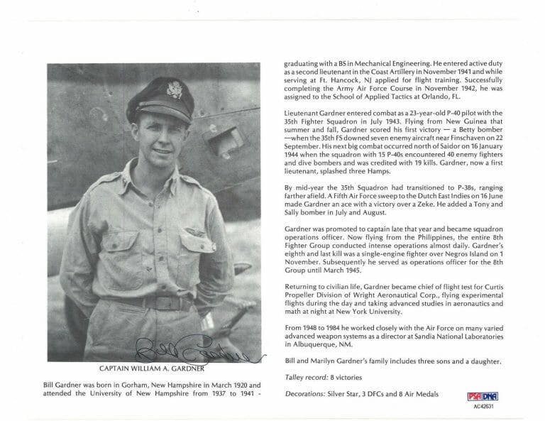 WILLIAM GARDNER SIGNED 8X10 (D) PSA DNA AC42631 WWII ACE 8 KILLS COLLECTIBLE MEMORABILIA