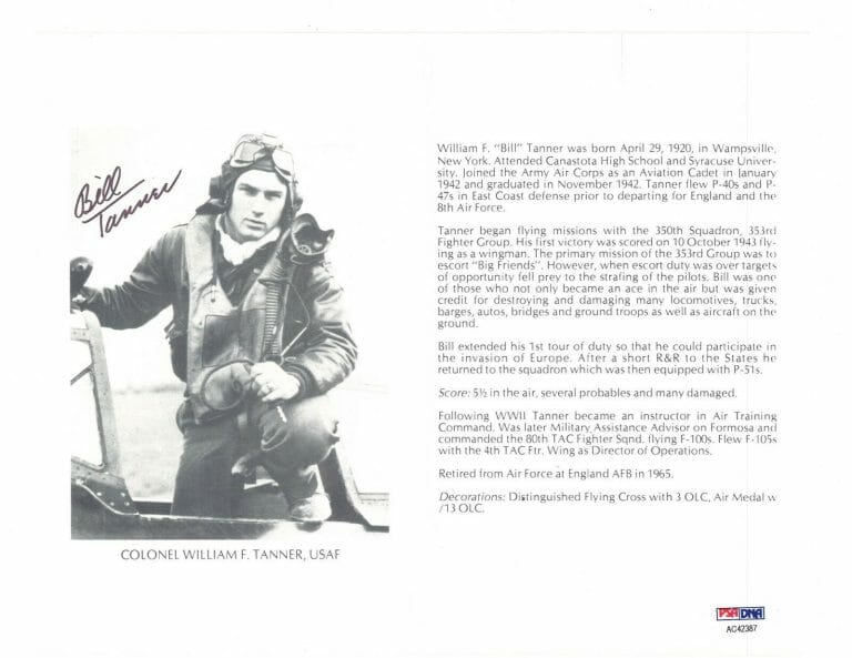 WILLIAM TANNER SIGNED 8X10 (D) PSA DNA AC42387 WWII ACE 5.5 KILLS COLLECTIBLE MEMORABILIA