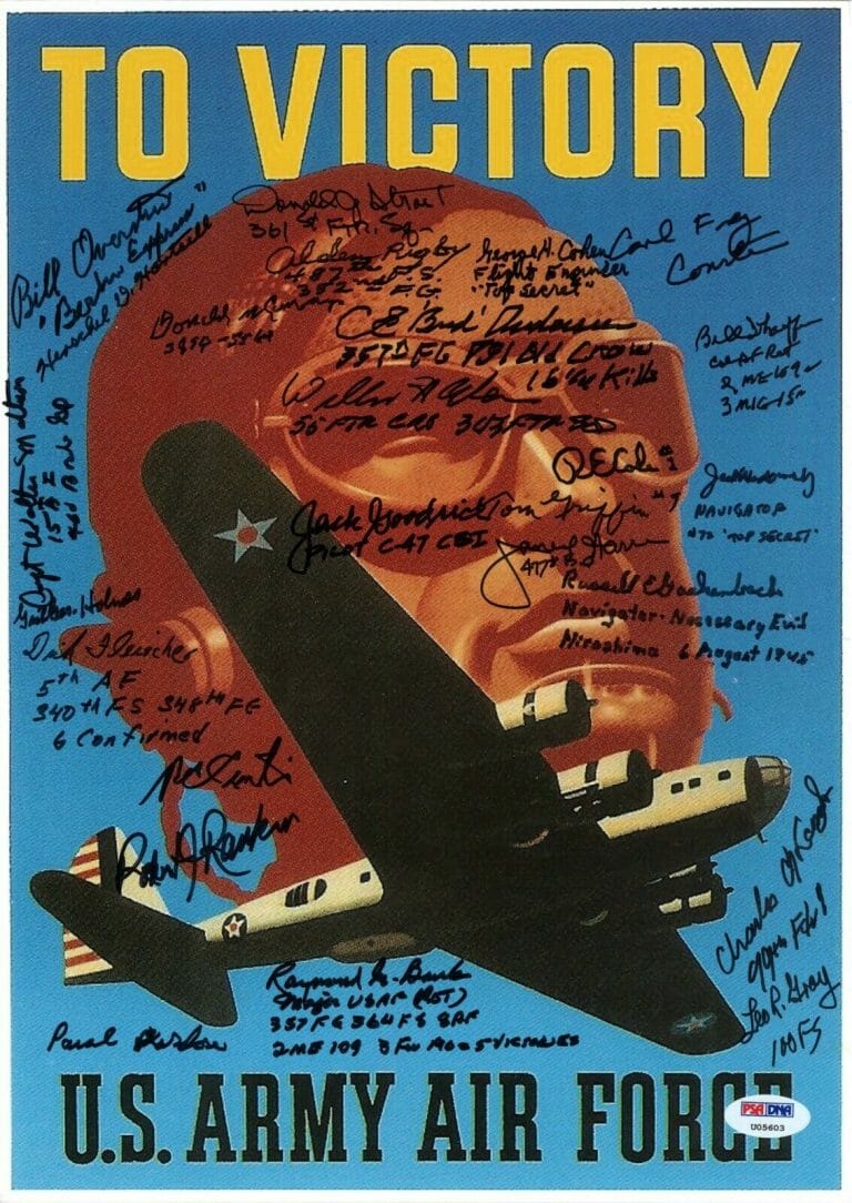 WWII US AIR FORCE VETERANS MULTI SIGNED 11X14 POSTER PSA DNA U05603 X25 RARE COLLECTIBLE MEMORABILIA