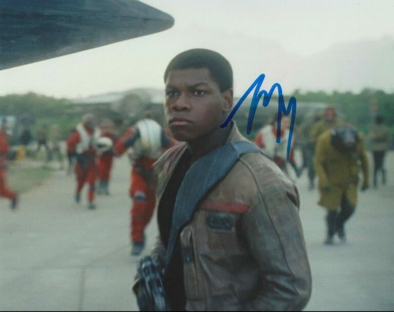 JOHN BOYEGA FINN FN2187 SIGNED STAR WARS EP 7 8×10 / K9 HOLO COLLECTIBLE MEMORABILIA