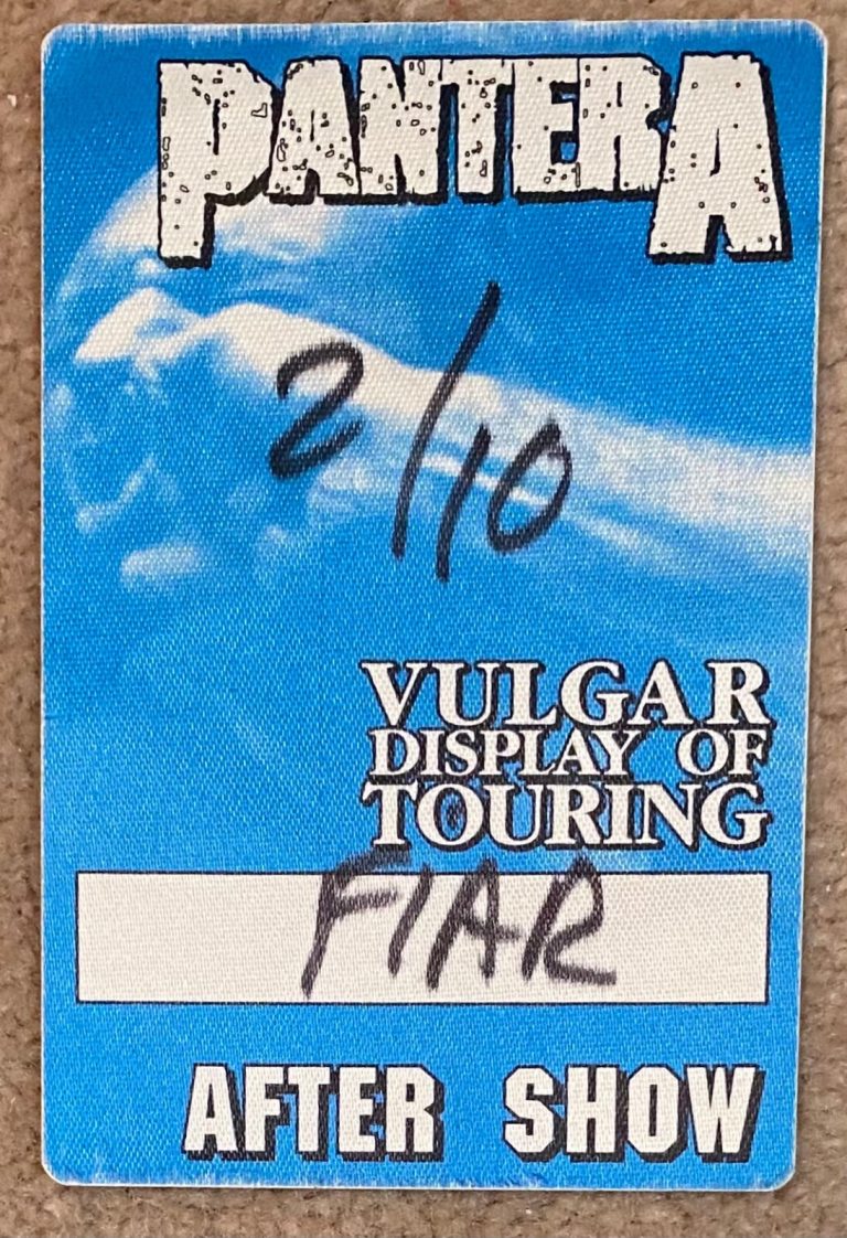1993 PANTERA VULGAR DISPLAY OF POWER AFTER SHOW TICKET 02/10/93 COLLECTIBLE MEMORABILIA